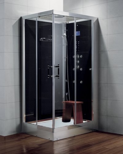Product Features - 220v ETL Approved (US & Canada electrical safety) - Steam Sauna (3KW generator) with cleaning function - 6 - Accupuncture Massage Jets - Amazon Rainfall Ceiling Shower - Polished Aluminum Trim - Black Tempered glass walls - Handheld Showerhead - 1 Waterproof Wood Stool - Chromatherapy Lighting - FM Radio - Aromatherapy System (Oils not Included) - Vitamin C Shower Filter - Touch Glass Control Panel - Computer Control Panel with Timer - Drain with trap included - Ventilation Fan - Overheat protection.Model : WS117S6-Right- Black