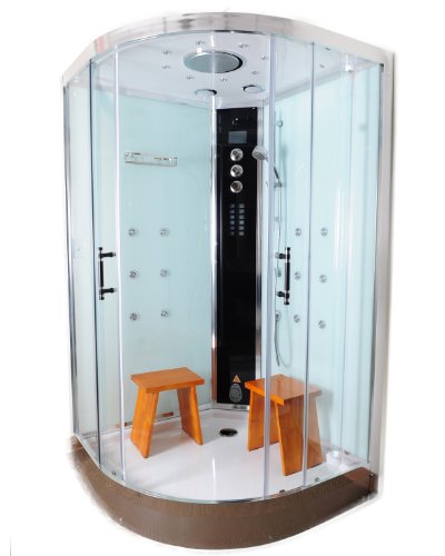 Product Features - 220v ETL Approved (US & Canada electrical safety) - Steam Sauna (3KW generator) with cleaning function - 12 - Accupuncture Massage Jets - Amazon Rainfall Ceiling Shower - Polished Aluminum Trim - White Tempered glass walls - Handheld Showerhead - 2 Waterproof Wood Stool - Chromatherapy Lighting - FM Radio - Aromatherapy System (Oils not Included) - Vitamin C Shower Filter - Touch Glass Control Panel - Computer Control Panel with Timer - Drain with trap included - Ventilation Fan - Overheat protection.Model : WS105S6-White